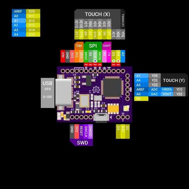 El FemtoUSB es un Atmel ARM Cortex M0 + que es muy pequeña y tiene un interruptor y LED RGB.