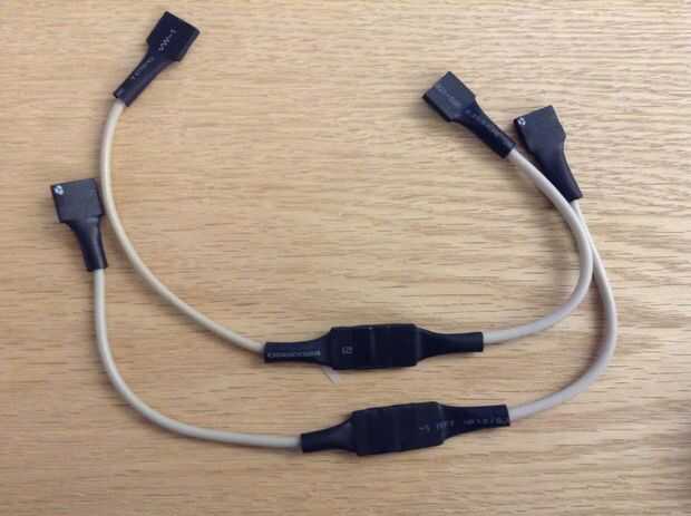 Con la cinta aislante, cinta los cables Pmod. Un encabezado de seis patillas en cada cable y conectarlos juntos para que estén conectados eléctricamente. Prestar atención a las flores en el cable. La flor indica que pin que conecta a ambos lados del cable Pmod. Para asegurarse de que no hay ninguna marca de confusión que las flores están juntos.