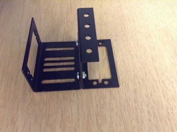 A continuación vamos a conectar los soportes del dos servo juntos. Conectarlos para que el lado corto del soporte de un servo se une a la parte trasera en el lado largo de la segunda. Uso dos de los tornillos del kit de soporte del servo.