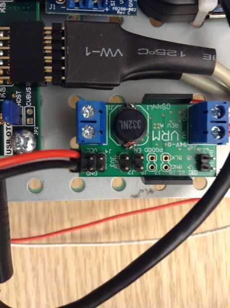 Uno de los cables de alimentación de dos clavijas MTE y conecte el lado de alimentación en el pin VS de la PmodCON3 y enchufe el otro extremo en el lado de 5V del regulador de voltaje. Los servos sólo pueden tener 5V.