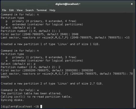 2. Esto escribir particiones y automáticamente salir de fdisk.