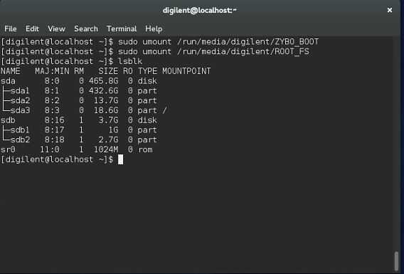 - sudo umount /media/josh/ZYBO_BOOT