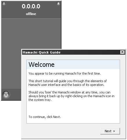 Ejecutar hamachi por primera vez. Deben mostrar un mensaje de que hacer para empezar como se muestra a continuación. Siga las instrucciones que aparecen en la ventana "Guía rápida de Hamachi". Siga el procedimiento normal de la red de seguridad. Utilizar un apodo que no es su verdadero nombre. De forma predeterminada, el nombre será el nombre de su equipo. Al pulsar el "botón de encendido", Hamachi irá en línea y usted tendrá una dirección IP de hamachi asignado. Crear o unirse a una red haciendo clic en el botón con una forma triangular en él. Si usted quiere conseguir un amigo a unirse a su red, necesitará decirles el nombre y la contraseña pues así que recuerden no hacerla la misma contraseña que se usaría para nada. La guía rápida guiará por todos los pasos que debían levantarse el hamachi y funcionando.