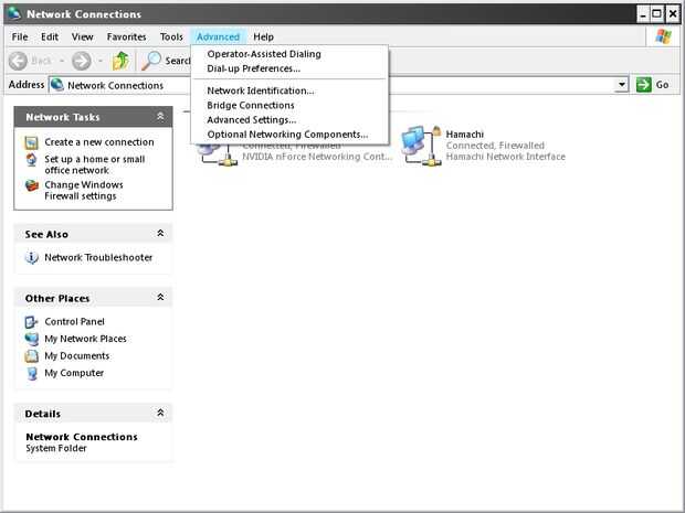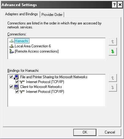 Es el momento de conseguir tus prioridades derecho! (en el buen sentido) En este paso, vamos a cambiar la prioridad de red en su computadora para que hamachi se establece en alta. Para hacer esta (en Windows XP) anda a Inicio > Panel de Control > conexiones de red. En la parte superior de la pantalla (donde archivo, edición, ver, etc.) se debe ver un elemento de menú "Advance". Haga clic en él y haga clic en "Advanced Settings...". En la ventana que aparece, seleccione la conexión Hamachi en la casilla superior y luego pulse el botón de arriba a la izquierda de la caja hasta que es más alto en la lista (lo que es la prioridad más alta). Haga clic en aceptar y cierre la ventana de "Conexiones de red".