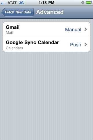 Aquí usted puede finalmente establecer las diferentes cuentas sincronizar diferentemente. He hecho puse mi cuenta de Gmail "Manual" que significa que sólo se sincronice cuando lanzo la aplicación de correo.