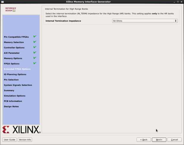 Paso 9: En la terminación interna del MIG de página de los bancos altos de gama, asegúrese de que la impedancia de la terminación interna es de 50 ohmios. Haga clic en siguiente.