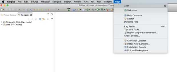 En Eclipse, vaya al menú ayuda y seleccione instalar nuevo Software... Copiar y pegar http://avr-eclipse.sourceforge.net/updatesite en el "trabajo con:" campo. AVR Eclipse plug-in, el golpe siguiente y y siga el procedimiento.