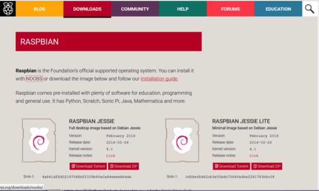 Un Raspberry Pi está diseñado para trabajar con el sistema operativo UNIX; hasta que uno está instalado, el dispositivo no puede hacer nada. Hay una gran variedad de distribuciones libres de Linux (sistemas operativos basados en Linux) que se pueden utilizar, y una persona inteligente de la tecnología puede optar por utilizar su distribución preferida. Mostraremos cómo utilizar Raspbian, que es una distribución de Linux diseñada específicamente para uso con un Raspberry Pi. Uno puede optar por instalar Raspbian manualmente, en cuyo caso se pueden descargar Raspbian directamente desde la Web de Raspberry Pi, en el enlace de más abajo.