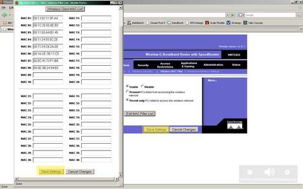 , Verá la ventana de lista de filtro de dirección MAC ha sido actualizada con las direcciones MAC de los equipos que desea tener acceso a la red inalámbrica. Presione el botón Guardar configuración.