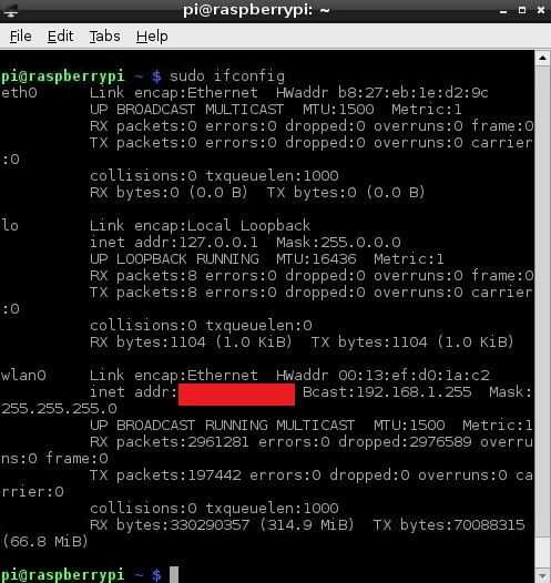 Una vez haya instalado uno de los acceso de VNC/espectadores, tendrá que averiguar qué es la dirección IP de la Raspberry Pi. Puede hacerlo abriendo LX Terminal y teclear "sudo si config"