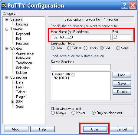 Lanzamiento de PuTTY y SSH para Raspberry Pi, desde aquí puede iniciar la instalación de software de servidor web. El usuario de inicio de sesión y la contraseña es frambuesa y pi respectivamente.