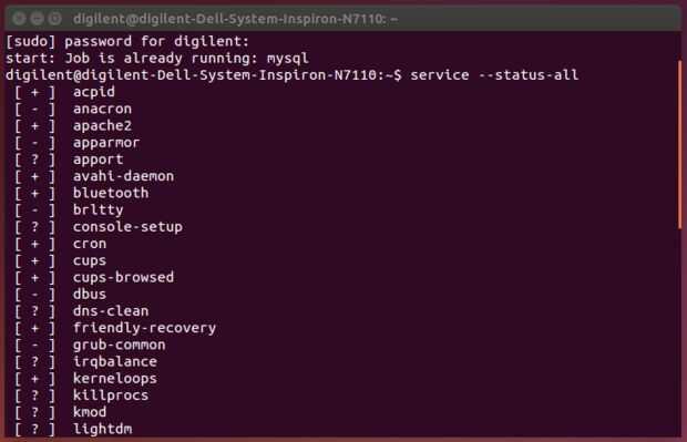 Si desea comprobar el estado de los "servicios", que incluye más que los artículos que hemos estado trabajando en, escriba el comando: