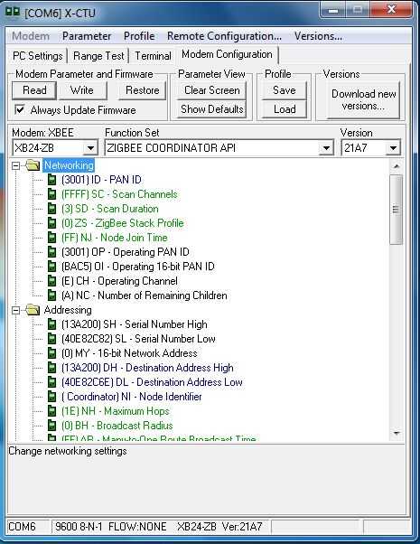 Si el dispositivo es detectado ahora mover ficha Configuración del módem y seleccionar el siempre actualizar firmware y haga clic en leer, este leerá la configuración actual del modem sobre todo va a estar en modo router, en este caso es en el modo API como lo he configurado así.