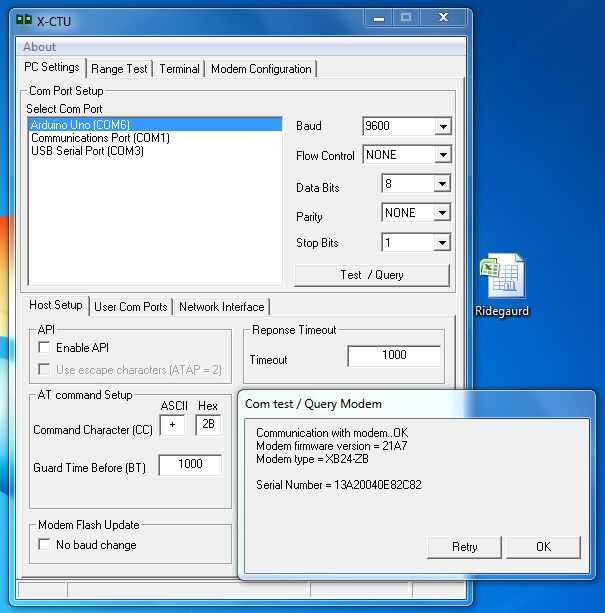 Una vez que las conexiones se hacen abrir el software Xctu y utilizar la prueba para detectar el Xbee conectado. Si "Todo está bien" entonces usted debe ver el dispositivo es de lo xbee conectado si no no te preocupes cambiar su velocidad en baudios a 115200 y comprobar. Si esto no funciona también por favor deje su comentario intentaré mi mejor para ayudarle hacia fuera / \.