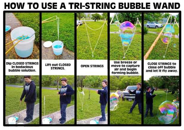 Que ha realizado con éxito una varita de cadena del tri, y ahora usted está listo para volar algunas burbujas BODACIOUS! Aquí es cómo utilizar la varita de tri-cadena (ver fotos de demostración):