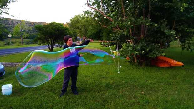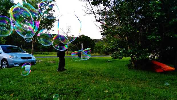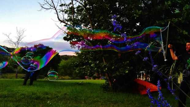 - Si tienes una brisa, le ayudará a formar la burbuja. Si no hay viento, deberás mover la varita por caminar o girar para obtener aire en la burbuja.