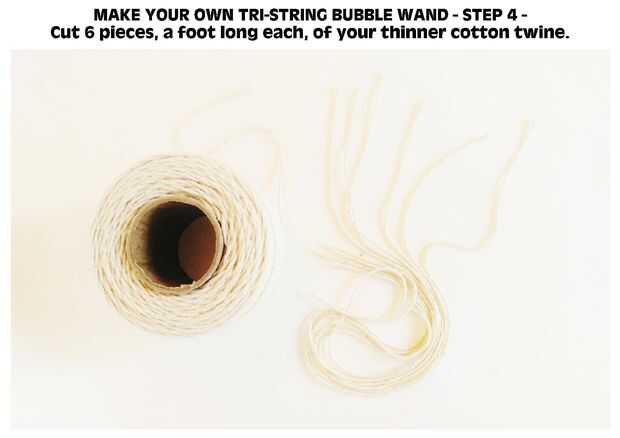 - Cortar 6 pedazos, un pie de largo cada uno, de su más pequeño hilo de algodón.