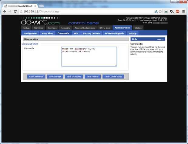 3. Seleccione ejecutar comandos. El router se reiniciará.
