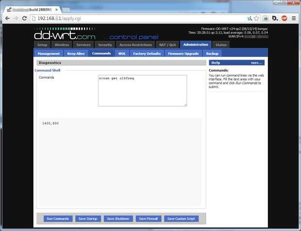 La DD-WRT wiki page para el NETGEAR R7000 Estados este router "apoya CPU overclocking (posible 1200MHz y 1400MHz)". Por encima de lo que será inestable. En general, evite el overclocking de la memoria RAM en este router. Discusión adicional de la configuración de overclocking puede encontrarse en la DD-WRT foros.