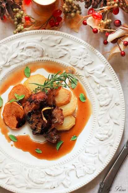 A su vez a baja temperatura, tamice la harina y revolver uniformemente con un batidor para hacer Roux - el espesante principal de la cocina francesa. Agregar caldo, anís estrella, canela y clavos de olor. Poner en alto calor y batir hasta que la salsa se espese. Mientras tanto, mĩ balsámico con el azúcar, llevar a hervir y dejar reducir hasta que se convierten en esmalte. Mezclar con jugo de naranja y luego con la mezcla anterior.