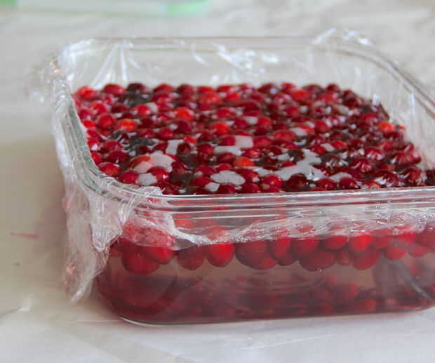 Dependiendo de su situación de almacenamiento de información, usted puede volcar los arándanos en la olla o poner los arándanos en un recipiente y verter el almíbar caliente sobre ellos.