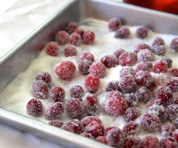 Las bayas alrededor del rodillo en el azúcar y sacuda el exceso por ventosas en las manos y saltando alrededor. :)