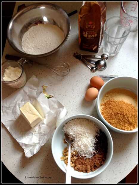 Combinar Ajengibre, semillas de cacao, coco y nueces picadas. Ponga a un lado.
