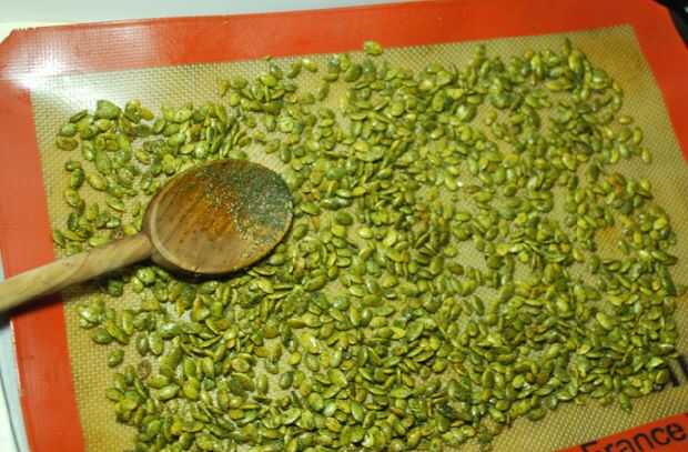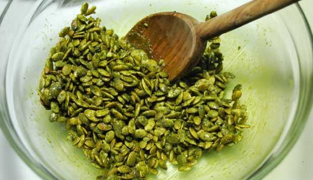 Me encanta todos calabaza de cosas, hasta las semillas. Mientras disfruto de las tradicionales semillas de calabaza tostadas, ligeramente saladas, no hay ninguna razón para parar allí. También hacen un gran lienzo para el té verde y jengibre. Dejar de lado el 1 cucharadita de azúcar si no quieres algo muy dulce o aumentar el jengibre para un aperitivo picante.