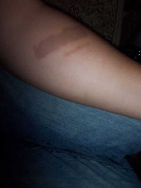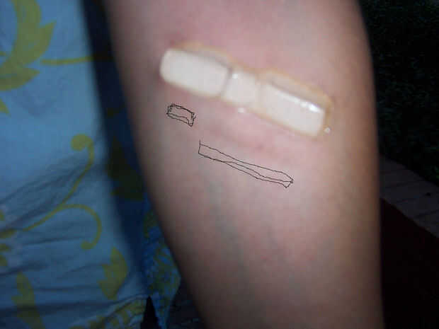 Este es el comienzo de unos mods que voy a hacer como escarificación de un pequeño rectángulo y una marca de calor sobre la marca marrón, que los cuales espero hacerlo por mí mismo... Estoy agregando a una cicatriz (las dos cicatrices marrones poco por encima de la quemadura de la congelación) que me fue dado por una bandeja caliente de pan tostado.
