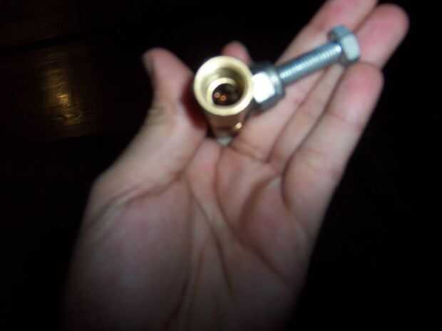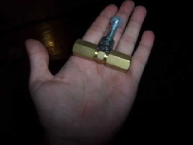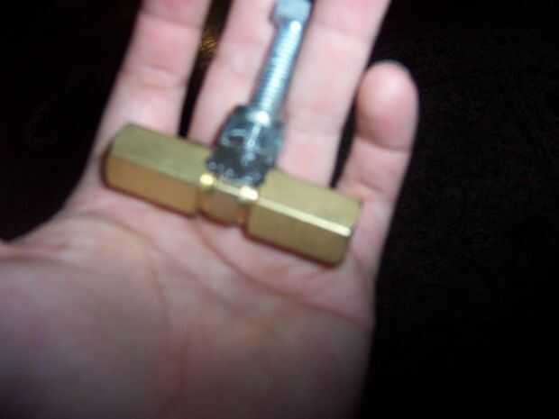 Primero llamé a un alimento para el ganado y fuente de lugar en la ciudad (Callahan) y tenían marcas de congelación único problema es que estaban sobre $! 70!!!!!! El material correcto debe ser bronce, cobre o latón, ya que estos metales el frío mejores que el acero. :: Suspiro:: deseo tuve acceso a un estudio del bastidor de bronce..., bueno. Me decidí a hacer esto con guarniciones de cobre amarillo que encontré en home depot. Mi hierro consta de 2 1/4 en acopladores hembra hexagonales y en acoplador macho hexagonal de 1/4. El mango es simplemente una tuerca y un tornillo con JB weld, nada extravagante. Luego tomé algunas cableado de cobre de un toroide y trenzado, recortado y en forma para que quepa dentro el medio acoplador macho para añadir un poco de masa en el interior (y cabe perfectamente por cierto.)