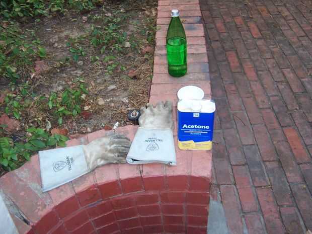 3. acetona (las guías sugieren alcohol isopropílico, pero decidí usar acetona porque se pone más frío.) * Nota importante * - la acetona es inflamable y si agregas acetona caliente/caliente a la mezcla de hielo seco que será burbuja FURIOSAMENTE... no tienen llamas alrededor de su conjunto para arriba!!!!!!