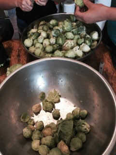 delicioso y laborioso pero no difícil de hacer!Plan para un par de horas, más si cortar la mano.Esta receta es para 8 -10 pplPuede que necesite lo dobleLista de ingredientes:Sobre una olla de coles de Bruselas8-10 chalotasVinagre de sidraSal y pimien