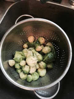 delicioso y laborioso pero no difícil de hacer!Plan para un par de horas, más si cortar la mano.Esta receta es para 8 -10 pplPuede que necesite lo dobleLista de ingredientes:Sobre una olla de coles de Bruselas8-10 chalotasVinagre de sidraSal y pimien