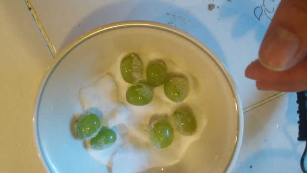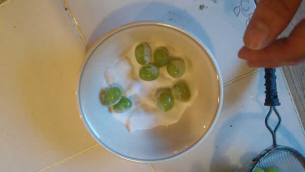 Nota: yo cubre todos mis uvas con azúcar porque quería algunas un poco tarter.