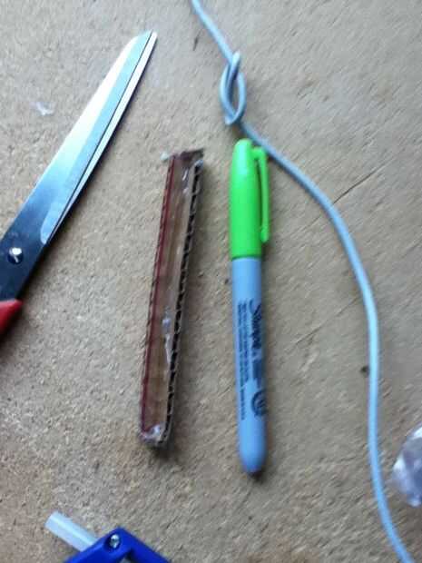 Hacer diversos diseños. Estoy planeando hacer una decoración de flor verde en la parte inferior. Y he añadido pegamento caliente en las líneas si el cuello de la guitarra. También he añadido algo de arranque cadena de línea al final y también un círculo de cinta de conducto negro en el centro.