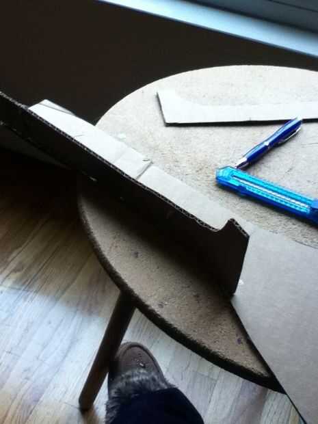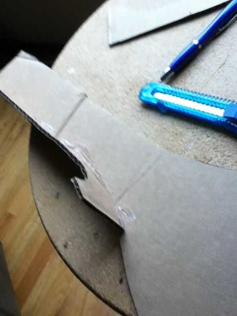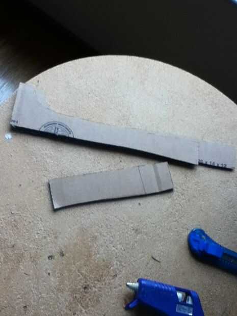 Por suerte tengo un violín y una guitarra pequeña y para aquellos que no tienen uno solo mira las fotos hasta que tienes una forma decente. Traza en el cartón corte hacia fuera y pegar a su base en la posición que desee. Hacer lo mismo al otro lado.