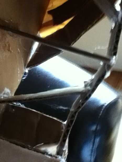 Para el lugar donde está débil la base y el cuello del guitarra me encuentro así añadirle trozos de cartón pequeñas para mantener en su lugar.