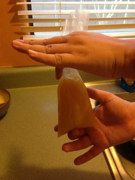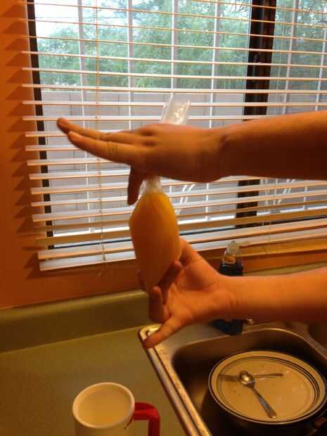 Hacer un nudo con la izquierda de la bolsa. Me gire un poco a la derecha, luego hacer el nudo.