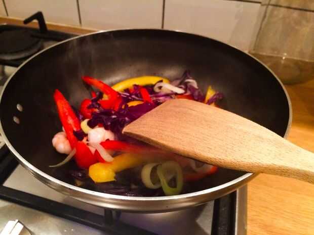 Congelador a la mesa en 10 minutos: Thai de camarones salteados con arroz de coco (6 / 8 paso)