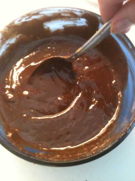 En un bol, mezclar todos los ingredientes muy bien hasta que quede suave, asegurándose de que trabajar en los grumos de mantequilla de maní (que se verá exactamente como masa de brownie).