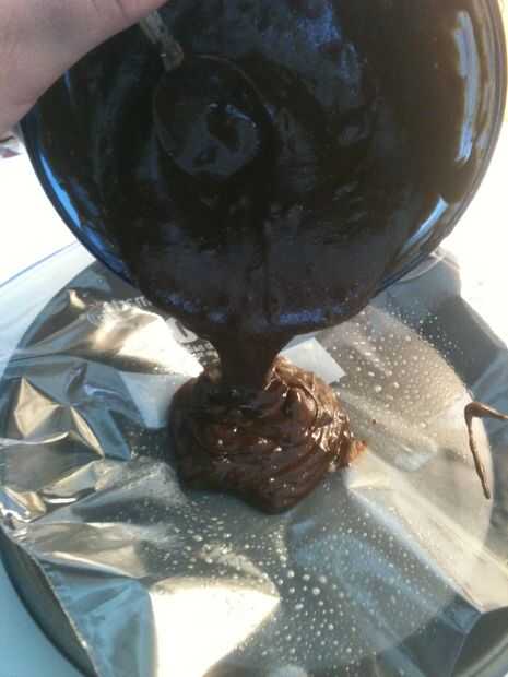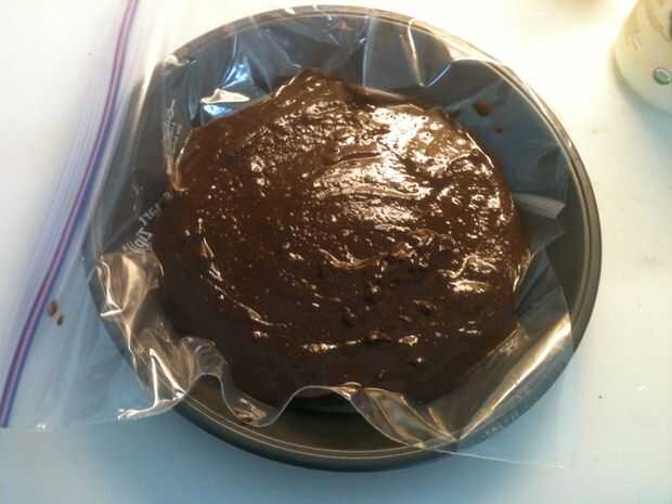 Línea una tartera o plato de tamaño similar con envoltura de plástico o papel aluminio (me gusta usar solo una galón grande bolsa de ziplock). Dar el plato forrado un spray de aceite o grasa con aceite de su elección.