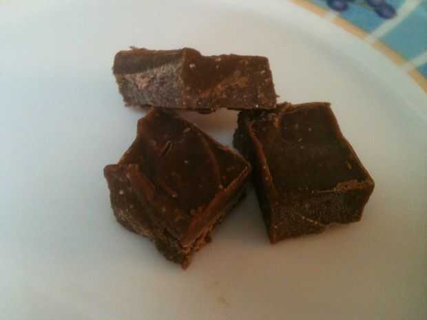Vierta la mezcla de mantequilla de maní en el plato y colocar en el congelador a firma para arriba antes de cortar, aproximadamente una hora. Dejar sin comer chocolate en el congelador como rápidamente se funde a temperatura ambiente!