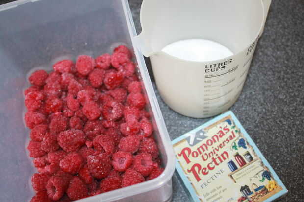 Hay dos tipos de pectina, polvo o líquido. Usé de Pomona, por favor compruebe la etiqueta de cómo mucho necesita utilizar y cómo prepararlo! Mezcla muy bien con el agua, ya sea a mano o incluso con la batidora!