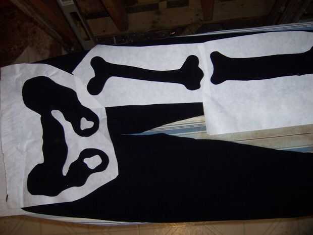 Diseñar las plantillas de hueso en la parte delantera de la camiseta y el pantalón. Asegúrese de que usted puede ver todos los huesos y que ninguna parte de los huesos está cubierta con la superposición de papel de congelador.