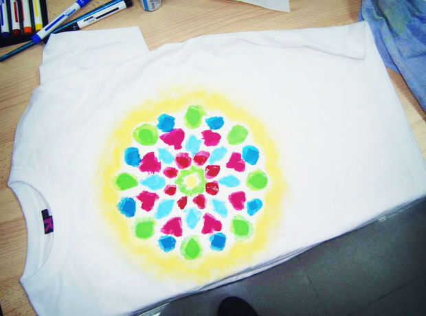 Para las chicas, hice un diseño sencillo, pero creo que realmente podrían han manejado algo más complejos al final. Tener mucho papel entre los agujeros, sin embargo, hizo más fácil para ellos a pintar dentro de las líneas sin conseguir un color enturbiado por los demás al hacer un diseño multicolor.