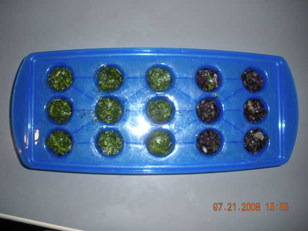 Hasta tomar su tierra, ligeramente húmedo albahaca y en la materia a los bolsillos de la bandeja. puede rellenar un poco o mucho. Poner en el freezer hasta congelar.