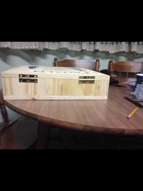 Las cajas en la foto eran un regalo para la boda de un buen amigo. Pidió unas cajas para sentarse en el signo de la huésped en la mesa, uno para sostener una botella de vino y el otro tiene notas de amigos y familiares asistir a la boda. El plan es a