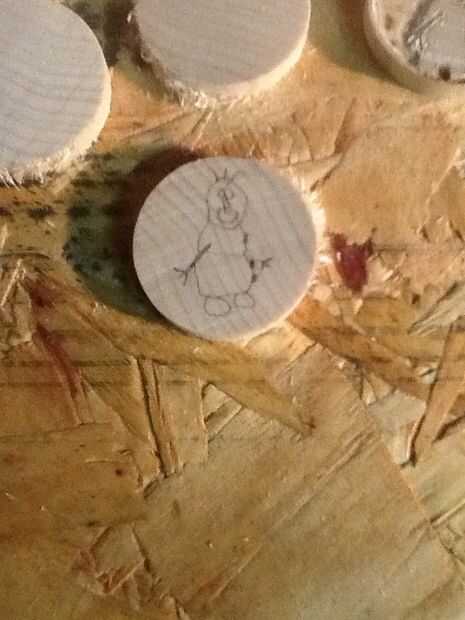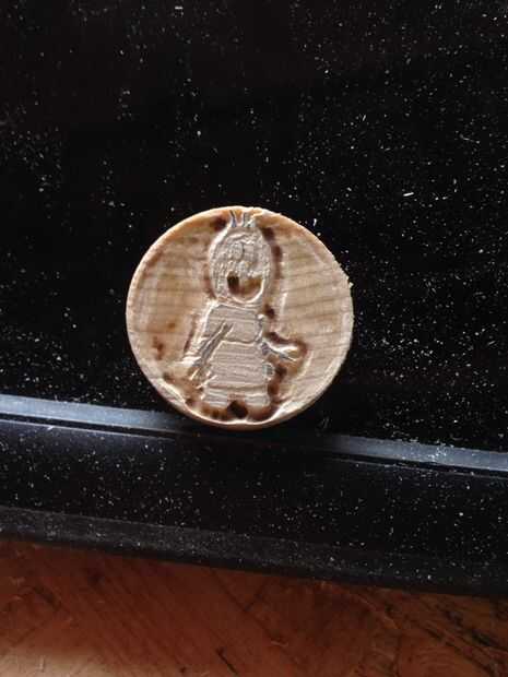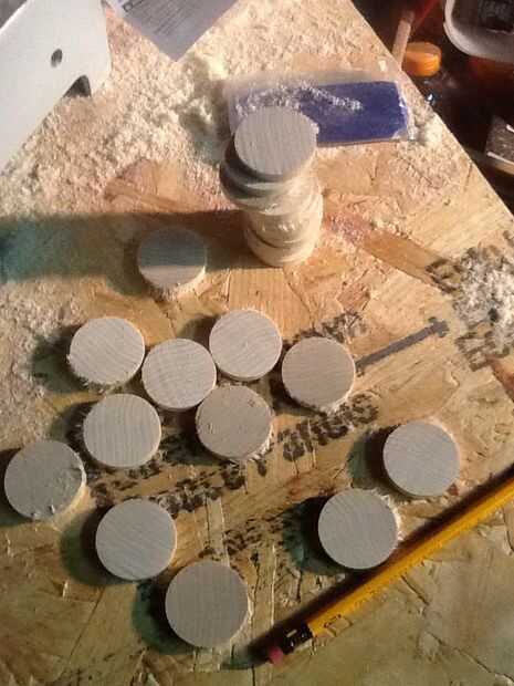 Con el pasador de madera marqué en una pieza de madera donde hacer el final que fue alrededor de 1/4 en. Y cortar 24 pedazos hacia fuera al creat mi cheque. Luego dibujó sobre ellos para darme un esquema para tallar.