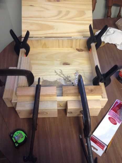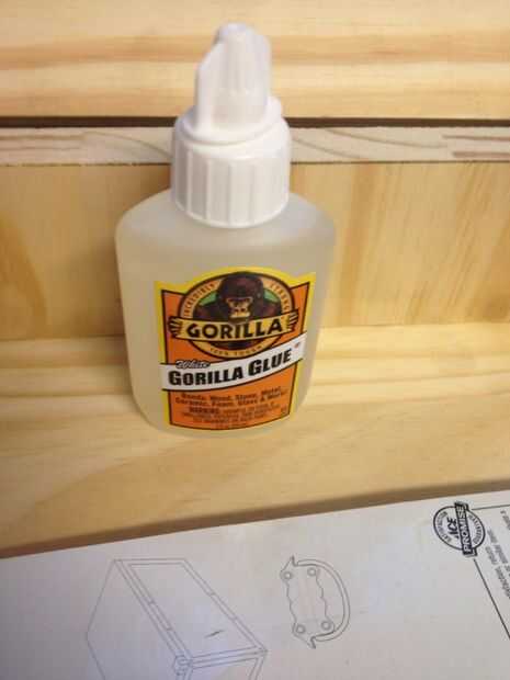 Pared de corte piezas mismo ancho pero poco madera más gruesa para caber dentro de la caja y utiliza pegamento gorila claro haciendo dos finos granos a lo largo de la longitud de la madera y fijar el apretado. Que siga las instrucciones para este pegamento, amortiguación luego amarre juntos y dejar durante 30-60 min sellar sobre las uñas empujando dentro de
