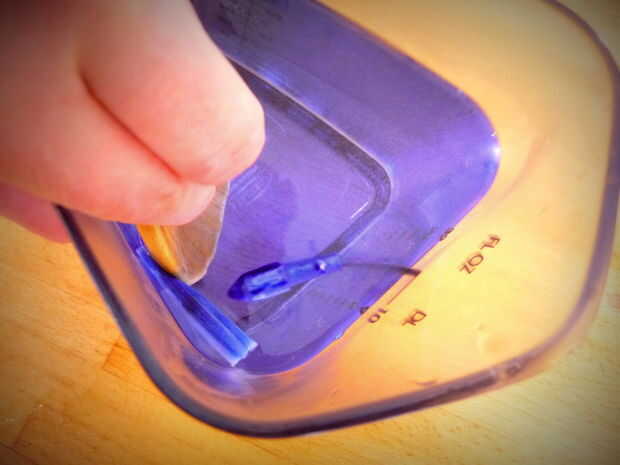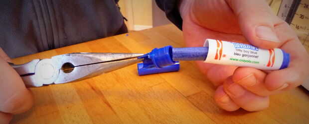 Romper el extremo apagado el marcador con un movimiento desgarrador con los alicates. Saque la espuma y el aplicador y depositarlas en un recipiente transparente llenado de agua tibia.
